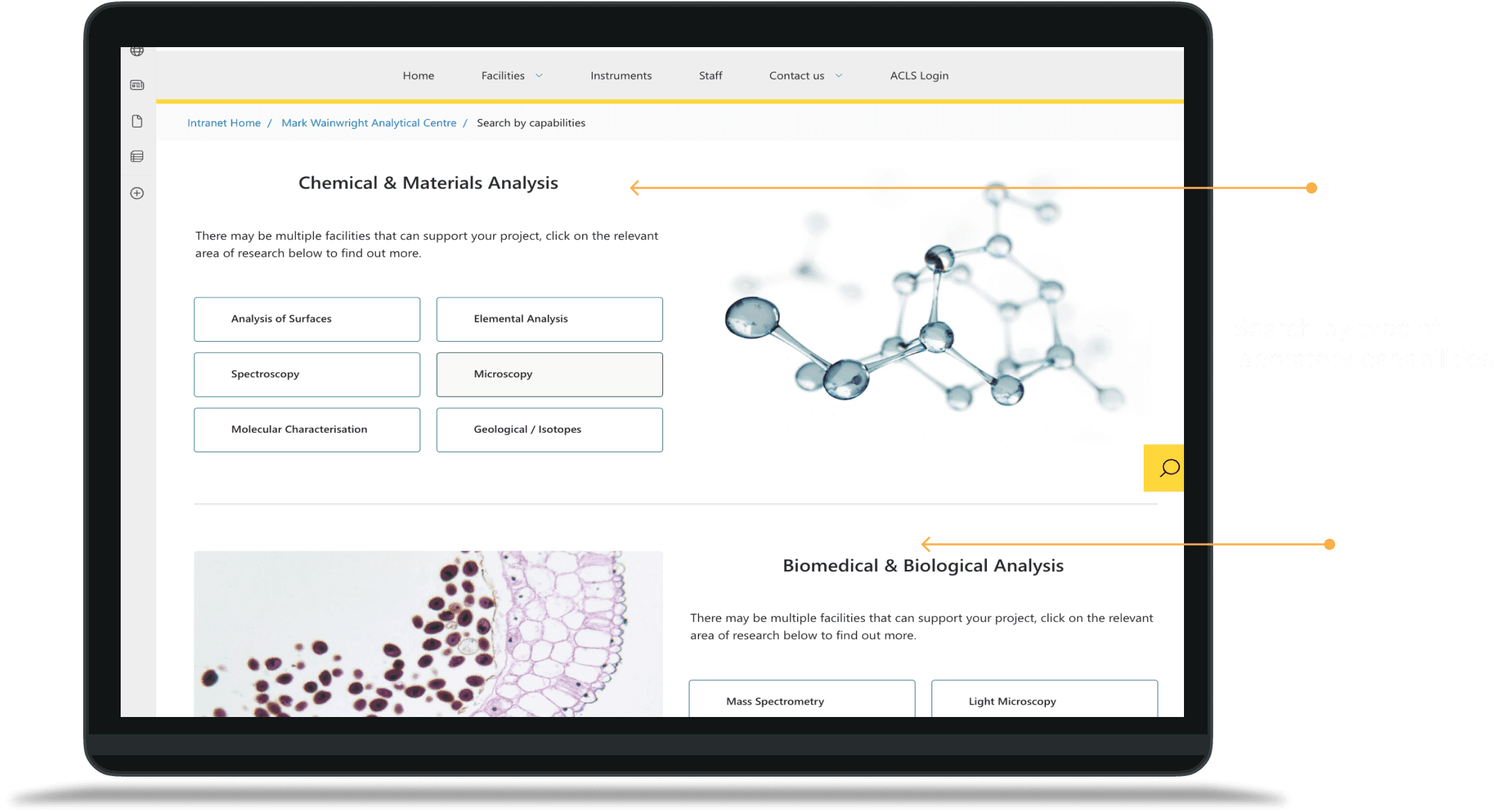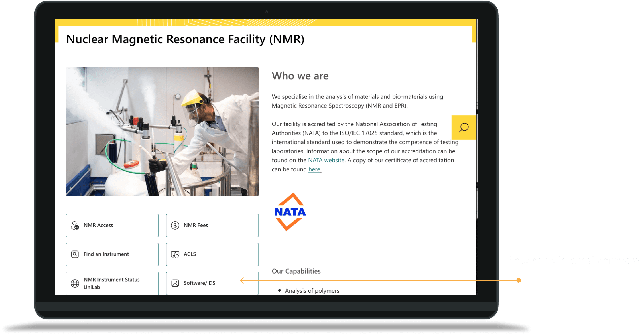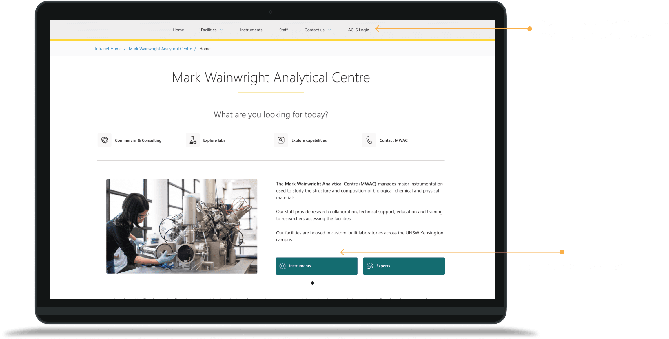 This intranet site addresses the issue of information overload by consolidating content relevant only to UNSW internal users. It integrates with the UNSW access-only sections of the ACLS system, allowing users to find documents related to laboratory onboarding and research project documentation.