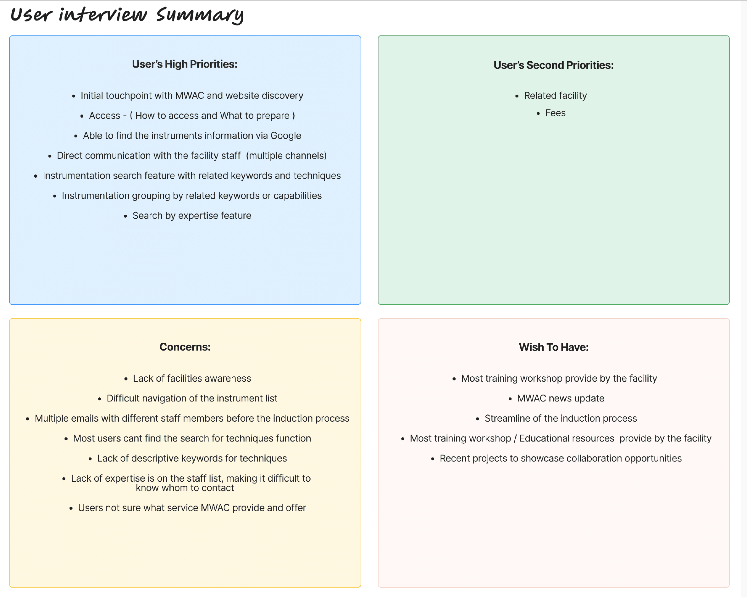 After meeting with the stakeholders, I conducted further primary research, including a competitor analysis and interviews with five different UNSW internal users. I then documented the research findings as a supporting resource for the stakeholders’ later brainstorming sessions.